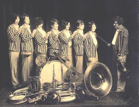 they won a "battle of music" against all their male competitors. In the winter the band played for vaudeville theaters on the Orpheum circuit--the cream of the theater chains.